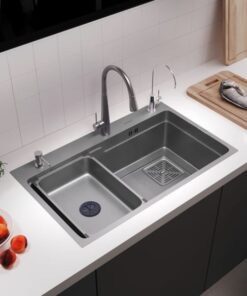 – Chậu rửa được phủ màu titan theo công nghệ phủ nano, giúp tạo nên một lớp bảo vệ chống trầy xước và chống oxi hóa. Màu titan cũng mang đến vẻ đẹp sang trọng và hiện đại cho chậu rửa, tạo điểm nhấn cho không gian bếp.