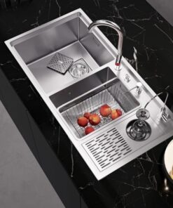 – Chậu rửa 2 hố có máy rửa cốc chén: Chậu rửa này được thiết kế với 2 hố, cho phép bạn rửa cốc và chén một cách tiện lợi và hiệu quả. Máy rửa cốc chén tích hợp giúp bạn tiết kiệm thời gian và công sức trong việc rửa cốc chén.