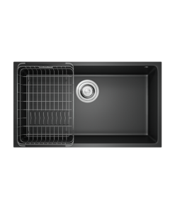 – Hố chậu vuông, góc lượn R10 cùng thiết kế gờ hạ bậc dễ dàng tích hợp phụ kiện khác (chậu mini, thớt gỗ, rổ inox, …)
