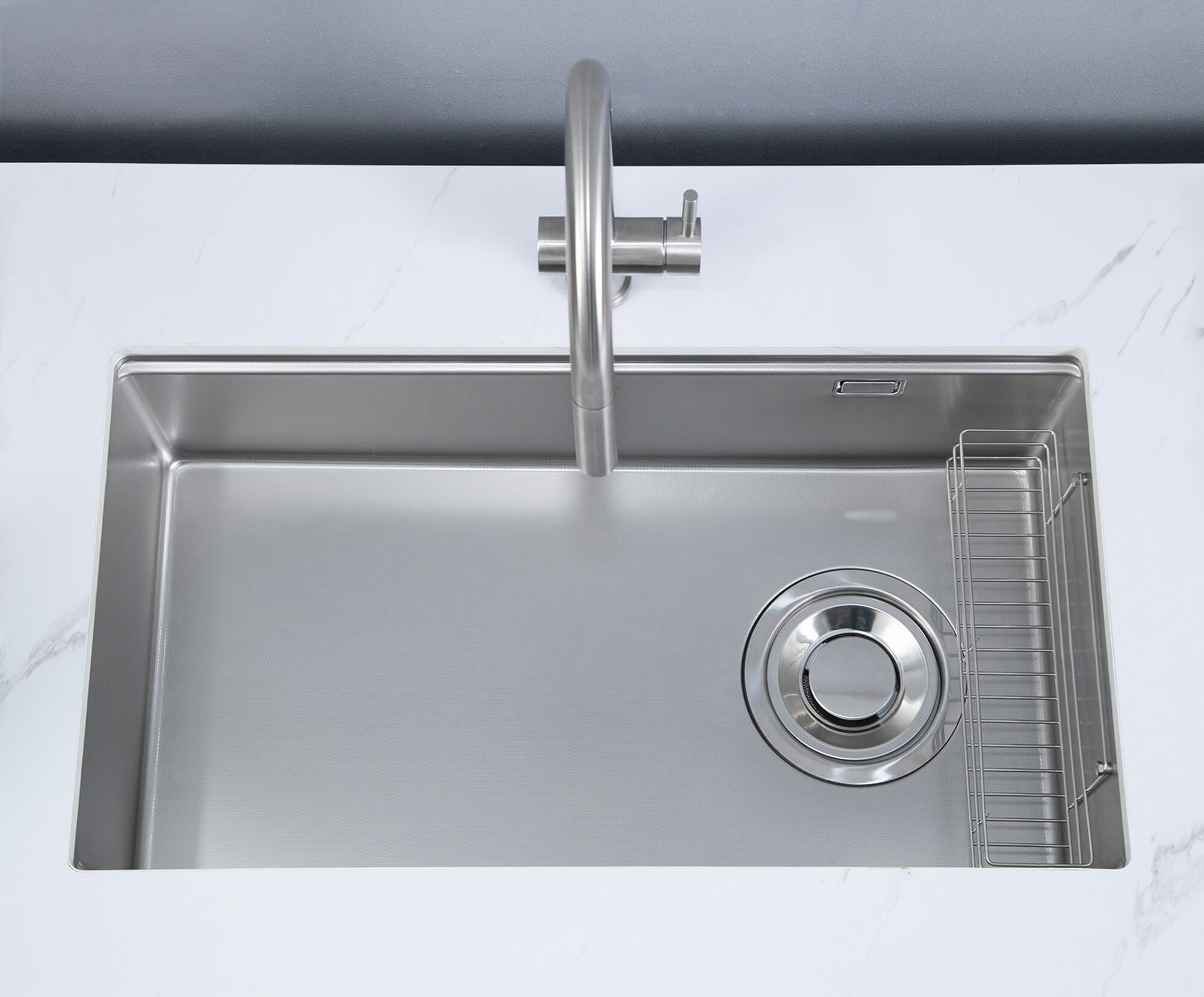Thay vào đó, cấu trúc dập nổi trên bề mặt giúp phân tán áp lực và chấn động, bảo vệ chậu bếp khỏi những vết xước không mong muốn, giúp duy trì vẻ đẹp và hiệu suất của chậu bếp lâu dài.