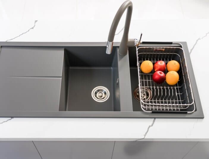 Chậu Granite Sink Livello Smart 1160 Grey được thiết kế với bàn chờ liền khối, mang lại thêm không gian sắp xếp và làm ráo dụng cụ sau khi rửa. Phần bàn chờ được tích hợp rãnh thoát nước thông minh, giúp nước thoát nhanh và giữ cho khu vực bếp luôn khô thoáng.