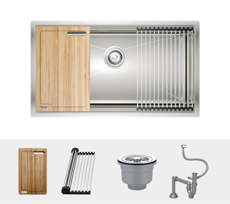 – Chậu rửa bát Workstation Sink – Undermount Sink KN8046SU dẫn đầu xu hướng với thiết kế hố chậu rộng rãi, lòng chậu sâu cùng phụ kiện tích hợp công năng.