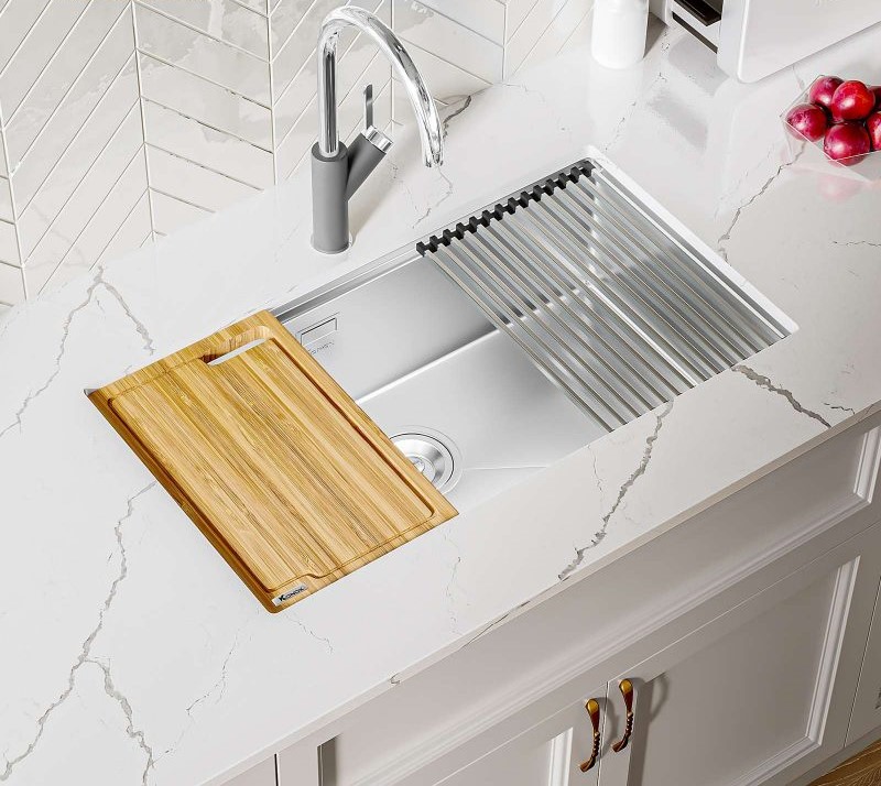 – Dòng chậu hạ bậc – tích hợp công năng: Thớt gỗ, rollmat.