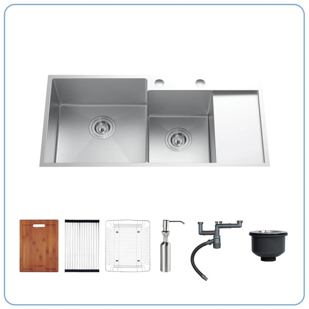 Thiết kế này cho phép thực hiện đồng thời nhiều thao tác như rửa bát đĩa, tráng rau củ hoặc sơ chế thực phẩm mà không bị chồng chéo khu vực sử dụng. Nhờ đó quá trình chuẩn bị và vệ sinh trong bếp diễn ra thuận tiện hơn, đặc biệt với những gia đình có nhu cầu nấu nướng thường xuyên.
