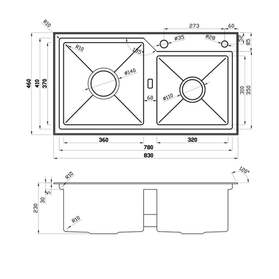 | Đặc điểm nổi bật | Chậu rửa bát 2 hố, Inox 304 cao cấp |