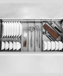 – Sản phẩm có hệ thống chuyển động rất thông minh khi bạn mở toàn phần cánh cửa tủ giá xoong nồi sẽ chuyển động đồng thời ra phía ngoài giúp bạn có thể nhìn được bao quát hết tất cả vật dụng trên giá bát đĩa inox tấm, không tốn chi phí cho đèn thắp sáng hộc tủ .