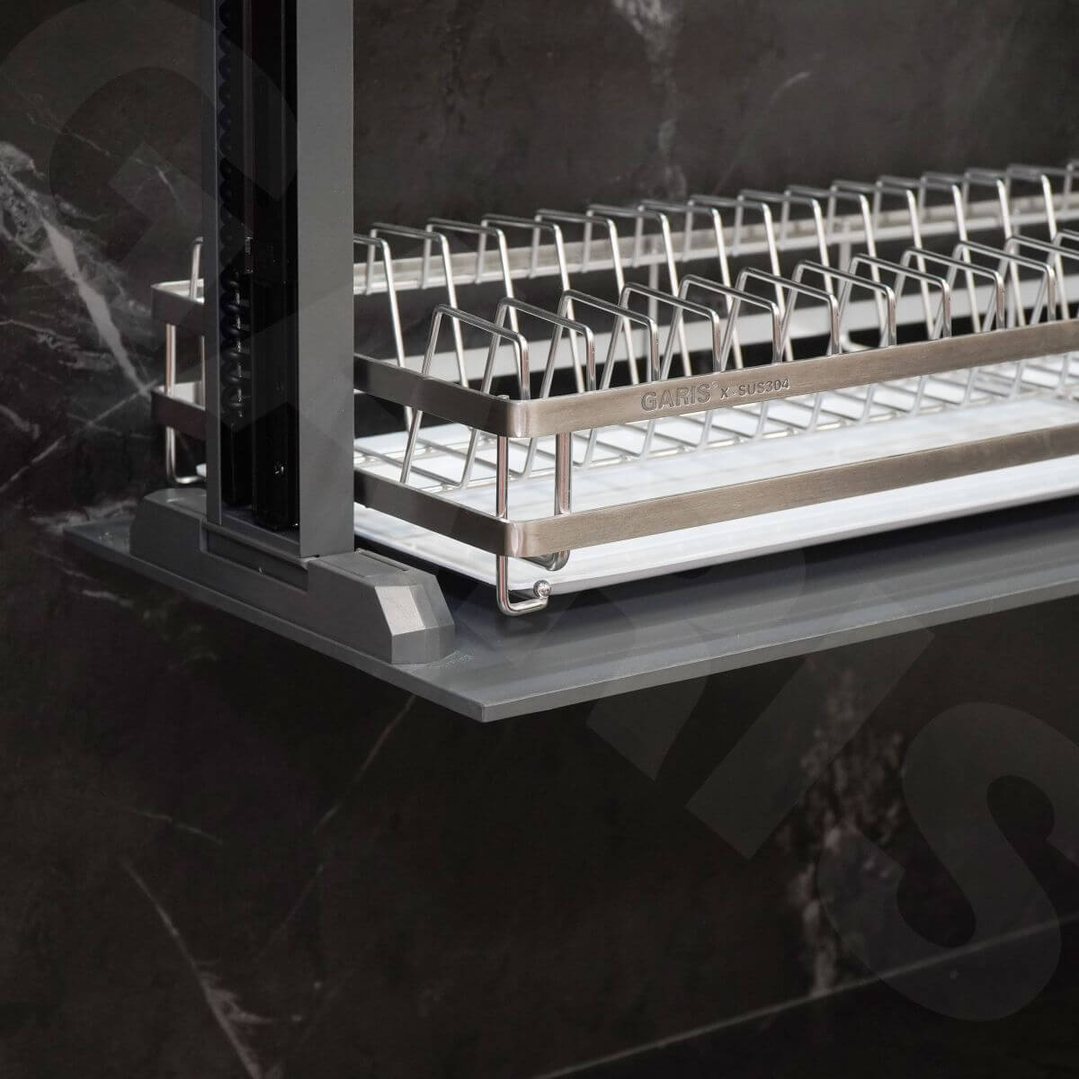 Giá bát đĩa nâng hạ điện Garis GL06LP đi kèm khay hứng nước giúp giữ cho khu vực bên dưới luôn khô ráo và sạch sẽ trong quá trình sử dụng. Ngoài ra, sản phẩm còn có giấy chứng nhận inox 304, giúp người dùng yên tâm về chất lượng và độ an toàn khi lựa chọn sử dụng trong không gian bếp.
