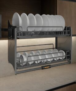 – Giá bát đĩa nâng hạ có khả năng chịu tải trọng lên đến 12kg, với mỗi tầng chịu được tải trọng 6kg. Điều này cho phép người dùng lưu trữ và sắp xếp nhiều bát đĩa một cách tiện lợi và an toàn.