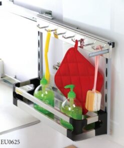 + Phần ray trượt giúp giá có thể lắp âm tủ.