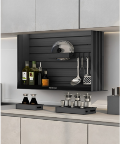 – Giá nâng hạ gia vị điện được làm từ vật liệu nhôm phủ fuorocarbon màu titan tiên tiến. Vật liệu này có đặc tính chống ăn mòn, chịu nhiệt và chống bám bụi, giúp giá luôn giữ được vẻ ngoài mới và bền bỉ trong suốt thời gian sử dụng.