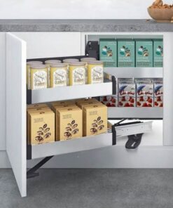– Giá được bắt trực tiếp vào cánh tủ kết hợp với bộ cơ cấu chuyển động gấp khúc thông minh nên khi mở cánh tủ, 2 khoang chứa được gắn với cánh tủ di chuyển theo giúp lấy đồ dễ dàng và tiện lợi hơn. Góc chết không còn làm khó bạn nữa.