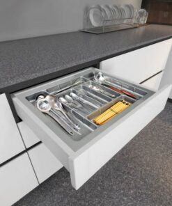 – Khay chia thìa nĩa chất liệu nhựa cao cấp của Eurogold có nhiều kích thước khác nhau dễ dàng phù hợp với nhiều kích thước tủ khác nhau từ 450-900mm chiều ngang tủ.