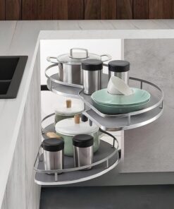 – Cấu tạo của nó gồm có 2 khay được gắn trên một trụ trục- trục này vừa có vai trò giữ vừa có vai trò như một chiếc ray trượt, khi đó phần khay có thể dễ dàng chuyển động quanh trục, người sử dụng có thể dễ dàng quan sát được đồ dùng bên trong và rất thuận tiện khi cần lấy ra.