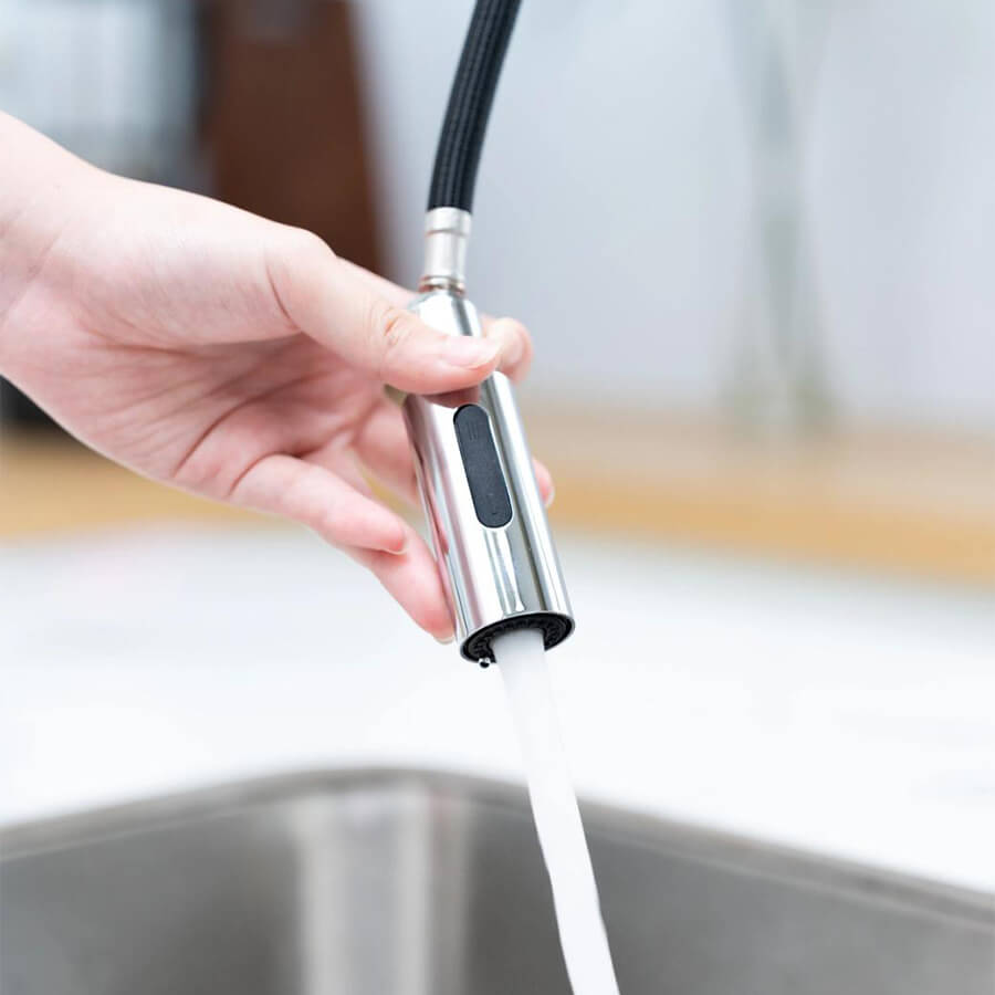 Một trong những ưu điểm đáng chú ý của vòi rửa bát Nobinox LOFT NX533 là thiết kế dây rút tiện lợi. Cấu trúc này cho phép đầu vòi được kéo ra khỏi thân vòi khi cần thiết, giúp người dùng dễ dàng điều chỉnh hướng nước đến nhiều vị trí trong chậu rửa.
