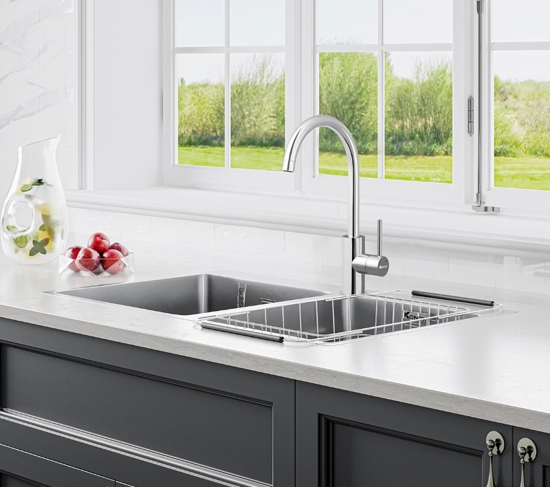 Thân vòi xoay 360 độ mở rộng phạm vi tiếp cận trên hố chậu, hữu ích khi bạn cần chuyển hướng dòng nước để rửa thực phẩm, vệ sinh góc chậu hoặc thao tác với nhiều vật dụng liên tiếp. Với các bố trí chậu đôi, khả năng xoay linh hoạt hỗ trợ thao tác qua lại giữa hai hố thuận tiện hơn.